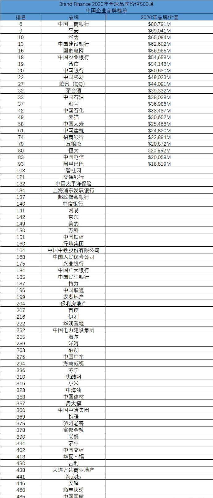 就在近日,2020年全球最具价值品牌排行榜便新鲜出炉了,从这份排行榜上我们可以看到,中国有三家企业进入了全球最具价值品牌排行榜的前十名,这三家企业分别是工商银行(ICBC)、中国平安以及华为,这也是我国历史上首次有三家企业进入全球最具价值品牌的前十名。