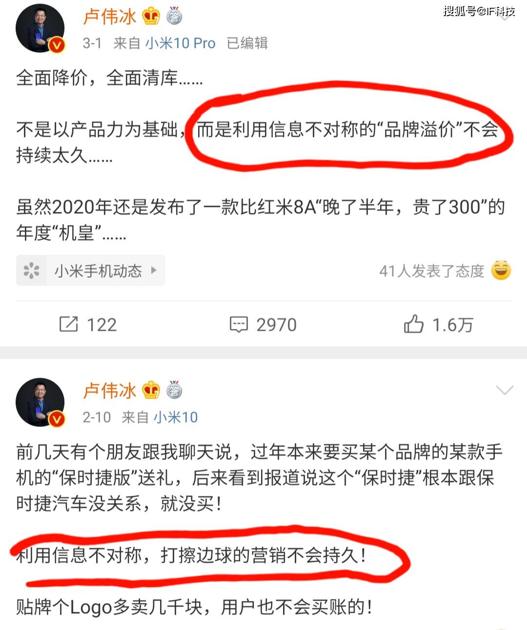 值得一提的是,卢伟冰不是第一次嘲讽某国内手机品牌利用信息不对称来高价出售手机,之前他表示利用这种方式的“品牌溢价”不会持续太久,打擦边球的营销也不会持久,另外直接表示利用专业信息不对称对大众实现“欺骗”的情况,并称某品牌利用这种方式来抹黑对手等等。对于这段时间以来小米和华为之间的互撕,相信很多网友都看烦了,或许这种互撕能提升对方的产品配置并降低价格。