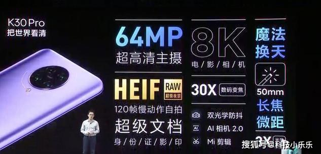 相机方面,Redmi K30 Pro分为变焦版与标准版本,不过两个版本均采用的是6400万像素的索尼IMX 686传感器。其中标准版采用了1300万像素的123度广角镜头、500万像素的长焦镜头和200万像素的景深镜头;而变焦版,则加入了OIS光学防抖,同时还拥有一颗800万像素的长焦镜头,可实现3倍的等效光变和30倍的数码变焦,广角和景深镜头和标准版保持一致。