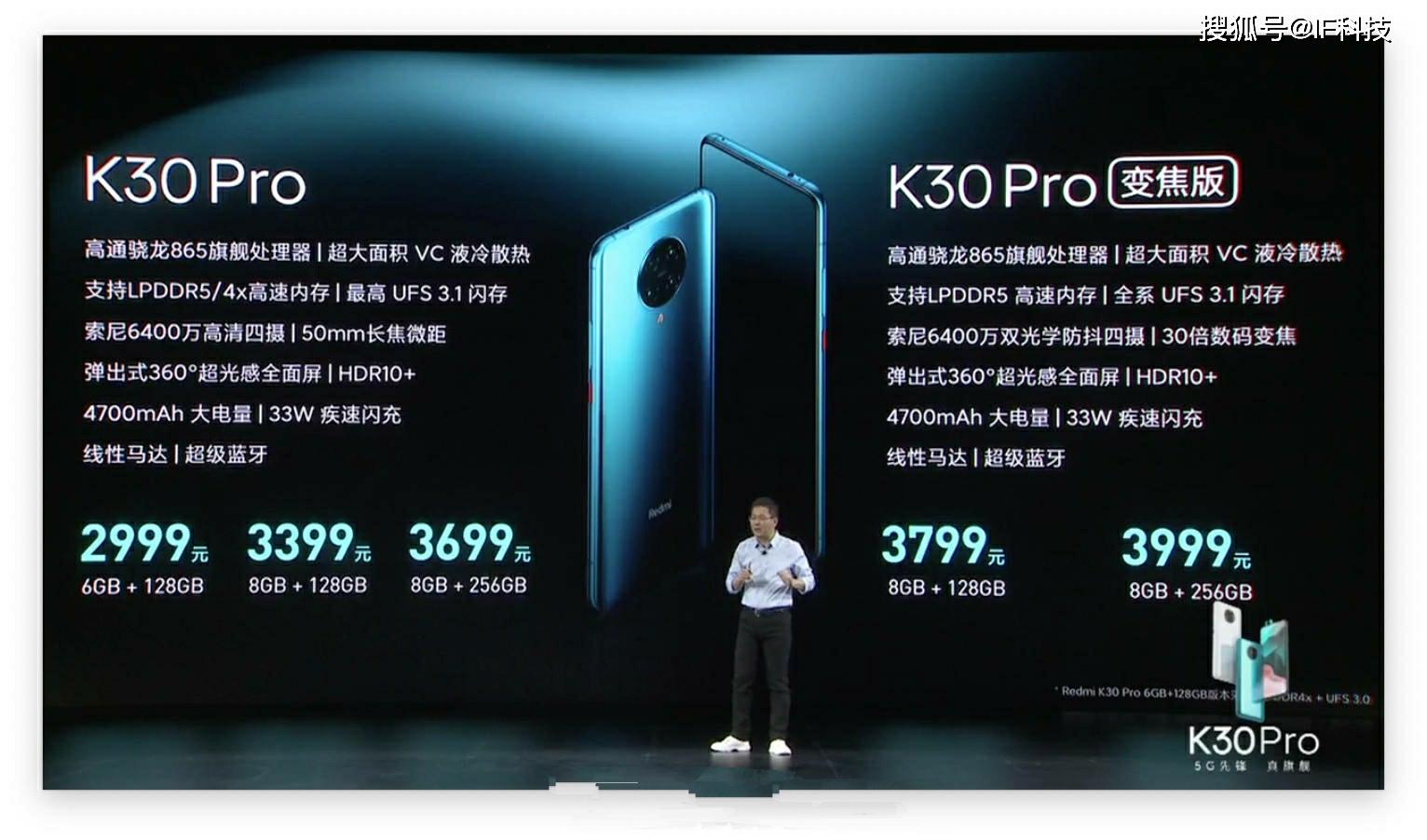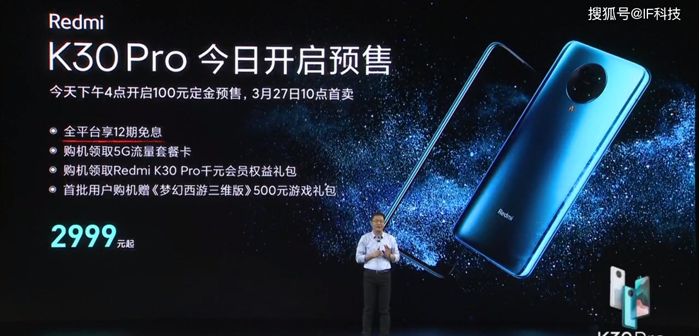 卢伟冰在发布会上公布Redmi K30Pro起售价为3299元之后,立刻掏出手机看直播弹幕,看看网友们是否满意,然而3299元并不是真正的起售价,最后2999元出现在PPT中再次震撼全场。