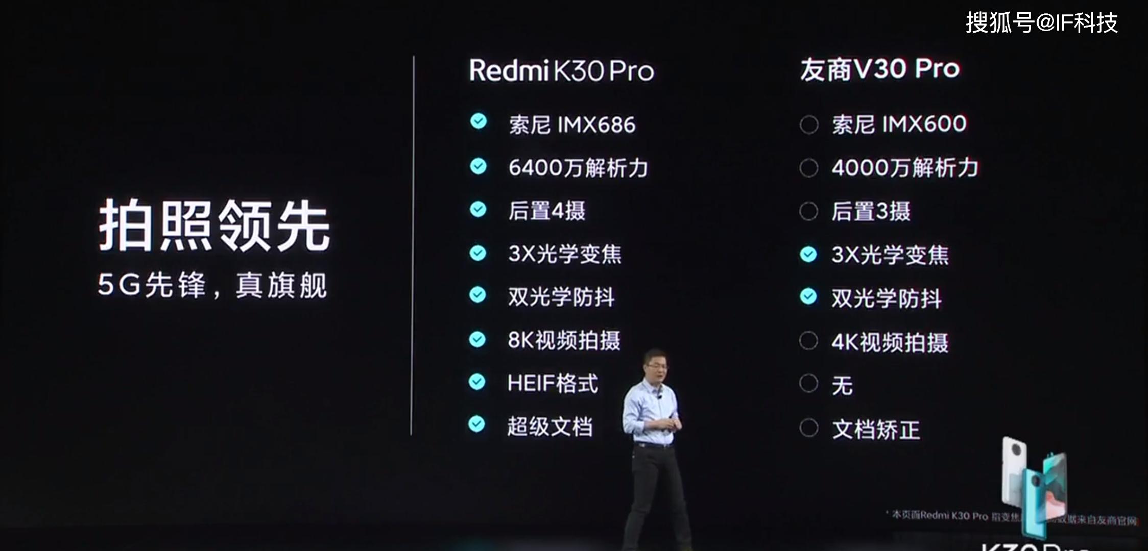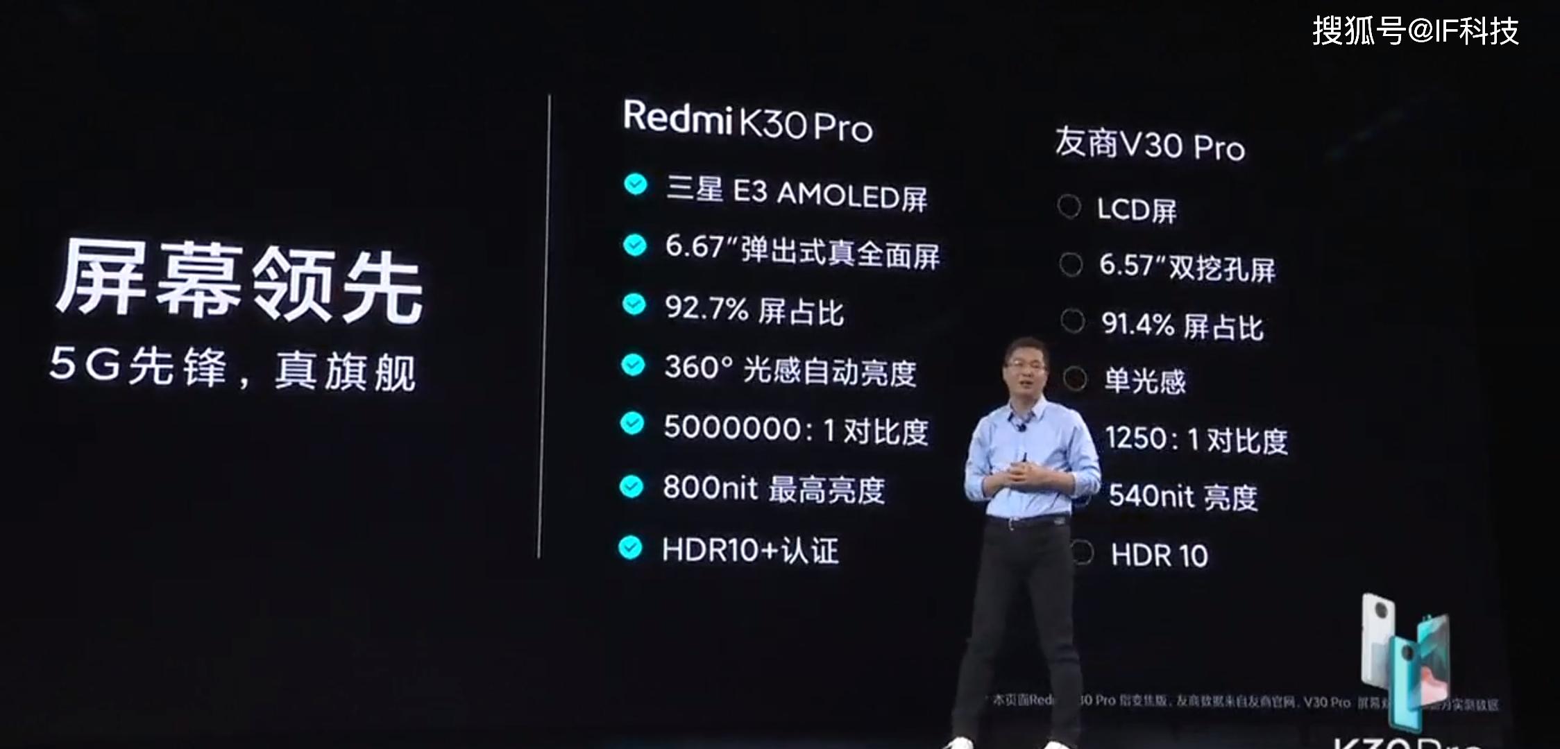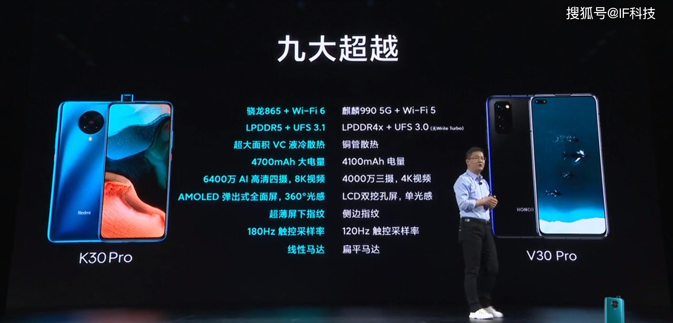 另外不论是电池容量还是充电速度,Redmi K30Pro都超越友商V30pro,卢伟冰在发布会上称360度无死角全面碾压友商V30pro。不过在Redmi K30Pro公布价格之前,还是有很多网友对60Hz刷新率不满意,当然他们也说如果定价2999元,那么眼睛可以自动补帧到144Hz。