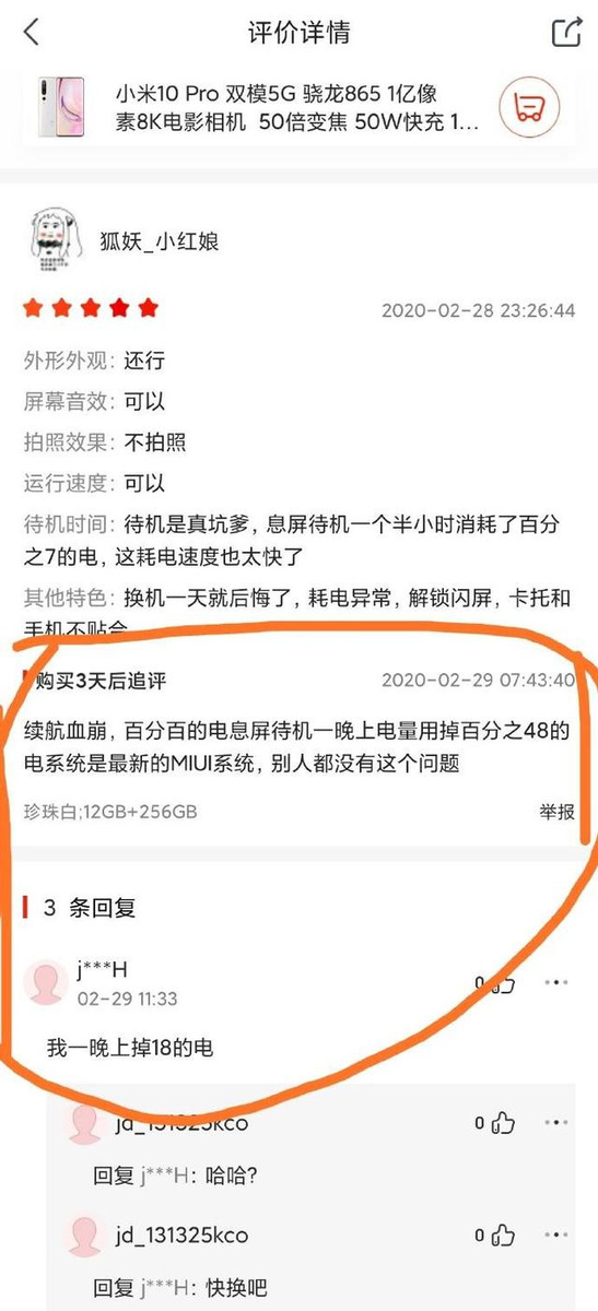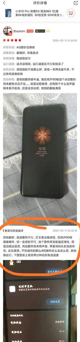 第一位用户表示其原本是想要去购买OPPO Find X2的,但是考虑良久过后觉得OPPO Find X2不值那个价位,所以才购买了小米10,结果到手之后发现小米10手机太热了,特别的汤,不带套根本就抓不住那种,可想而知是有多热了,此外,这位小米的小米10还出现了断流的现象,评价之后还要被人喷……