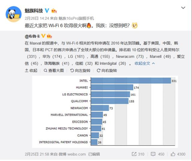 不知道大家还记不记得,在雷军对小米10进行预热的时候,曾经大肆宣传过wifi6技术,还声称华为p40系列不会有wifi6技术,结果被华为用wifi6+打脸,而在近日,随着wifi6专利占有量的曝光,魅族也打了一把雷军的脸,因为在wifi6专利中,魅族的专利数量为41个,在wifi6专利数量排名中排第8位,也是国内除华为外唯一一个拥有wifi6专利的手机厂商,不知道雷军在看到魅族的专利数量后会是怎样的一种表情呢?