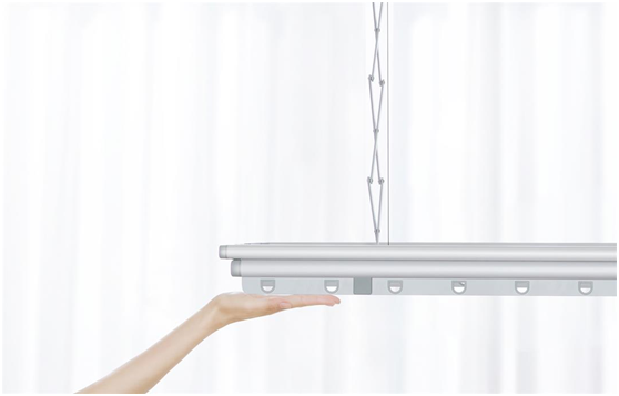 此外,米家智能晾衣机还拥有别样的“玩法”,晾衣机下降到合适高度时,手轻轻一托,晾衣机停止下降;挂好衣物后,手向上一推,晾衣机开始上升。