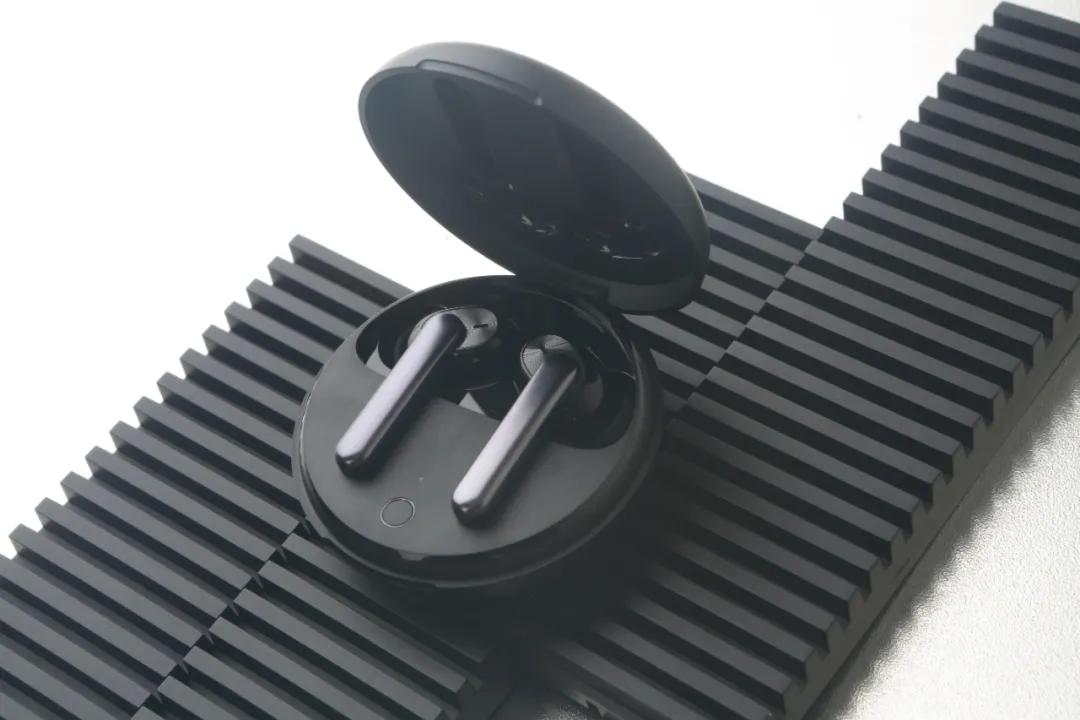 它拥有“敢自黑”“被表白”“真爱粉”三种配色,听这个名字是不是感觉有一点调皮的感觉?是的,它的颜色命名也的确来自于网络词汇,非常新潮有个性。而我们拿到的是一款“敢自黑”,比较耐脏,但是容易沾染指纹。可以看到它仅有手掌中心一块大小,内部采用磁吸式设计,耳机放入其中会牢牢吸附住。同时,充电盒还采用了与大部分手机相同的Type-C充电接口,免去了单独配备充电线的烦恼。