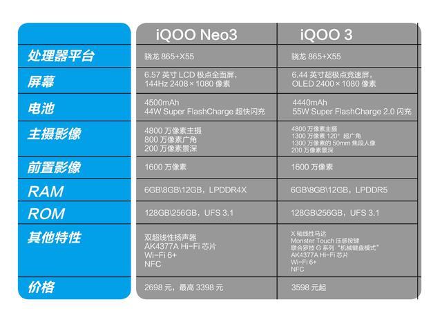 所以,“唯一能超越自己的,只能是自己”,这句霸气十足的话,iQOO是很受用的,它也准备实实在在地继续践行下去。对了,前言里说的“参数表对比”还是有必要的,这样各位能更清晰地明白iQOO在上半年做了“哪两件杀器”。