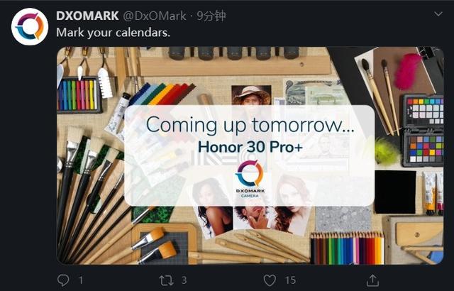 刚刚,DXOMARK在推特上宣布将于明天公布荣耀30 Pro+的相机评分。