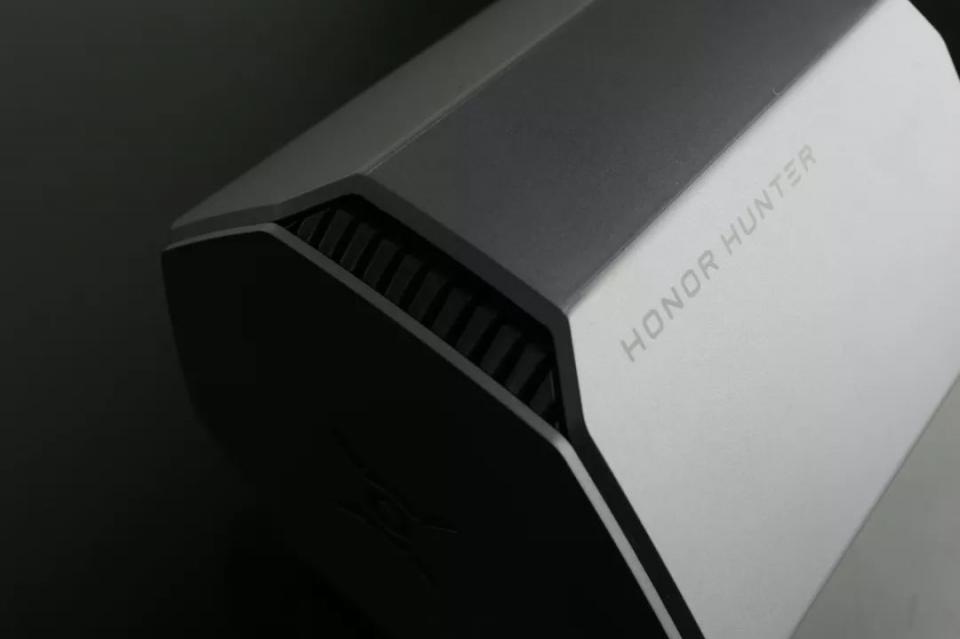 有别于我印象中的绝大多数路由器,荣耀猎人游戏路由的外观设计非常酷炫。其外观是非常新颖的八边形设计,表面的枪灰色喷砂工艺也让这款路由器拥有较高的质感,而且上手时的触感也不错。细看之下我还发现,这款路由器的顶部和底部都设计了大量的条状散热孔,所以路由器内部产生的热空气从顶部的散热孔排出,而冷空气则从底部的散热孔进入,这样就形成了一个被动散热系统。