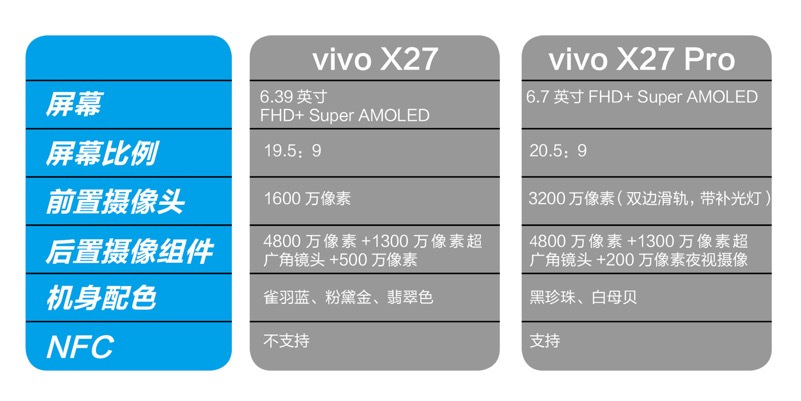 今日单谈X27,X27 Pro我们往后再聊。这里我们先列出两个版本的主要区别,大众可以一目了然。