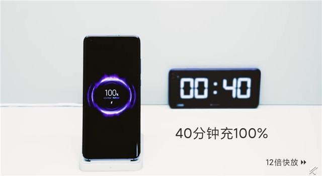 小米实验室这次是采用了一款“魔改小米10 Pro”手机,配置了4000mAh电池,采用独家40W无线+MI-FC闪充技术,可以实现20分钟充57%(2280mAh),40分钟充到100% ,并且表示高速充电不发热 。在测试中,小米也使用了一款支持40W无线闪充的小米立式风冷无线充。