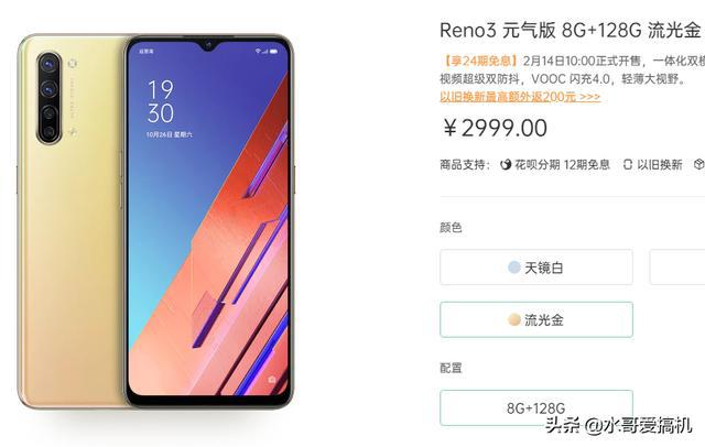 OPPOReno3,说实话这在线下市场也是有竞争的,都是卖小3000的价格,元气版用的高通765G处理器8+128卖2999,天玑1000L版卖3399,说实话这手机主要的卖点就是轻薄,和配色漂亮了,甚至我都觉得这里面没啥好说的。