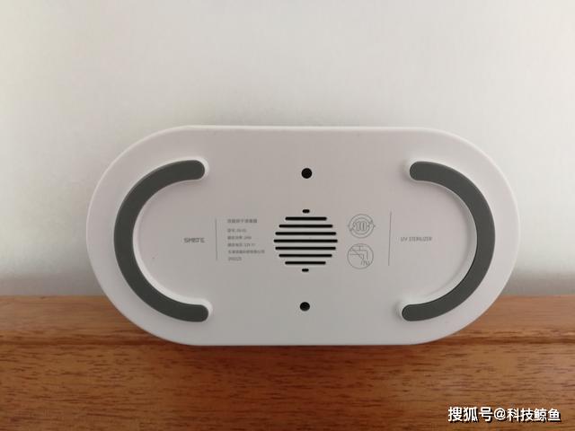在须眉烘干消毒器的底部设置有两个对称U形摩擦脚垫,以及产品的参数信息。产品的配件也很简单,一个主题须眉烘干消毒器、一个设配器、一本说明书。