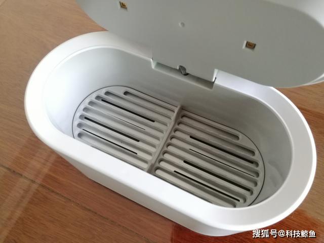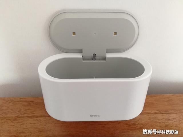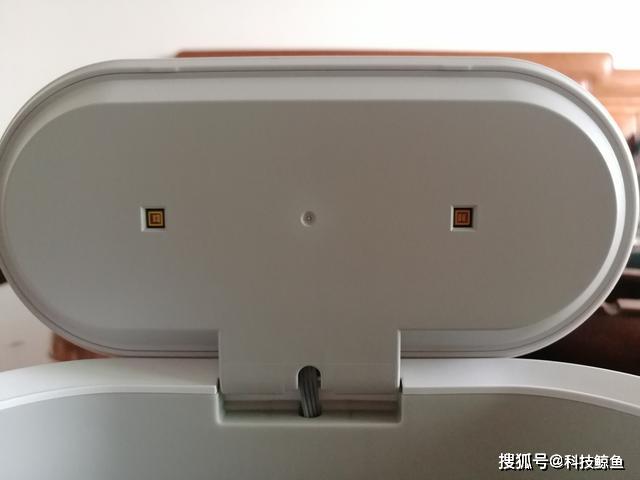 翻开盖子可以看到有两个紫外线灯珠,它采用的是UV-C LED灯珠,使用寿命可以达到1500小时每次5分钟,也就是1.8万次。