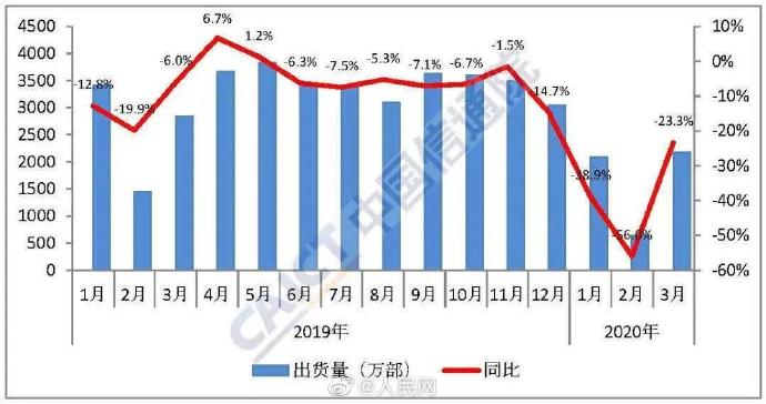 人民网作为重要的官媒,为一个手机品牌发声点赞,这还是极少有的,这也反应出一加8系列这次所获成绩的难得。要知道,在这段特殊的时间里,国内手机行业“金三银四”的发机热潮遭遇寒潮,整体萎靡不振。根据中国信通院的数据报告,2020年2月出货量同比下降56%,3月同比下降23.3%,手机寒冬在短暂回暖后在袭整个行业。