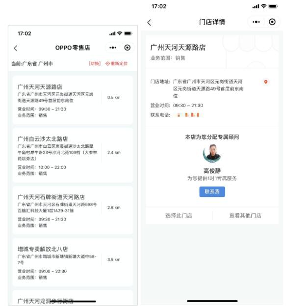 对于普通用户来说,怎样选择到一款更适合自己需求的产品呢?以往在线下门店,会有服务人员给出客观、专业的意见作为参考,线上门店是否就只能用户自己“大海捞针”呢?不是的,OPPO官方商城会根据用户的位置信息,自动匹配最近的线下零售店专属顾问进行1对1服务,用户也可以自行选择其它零售店的专属顾问。