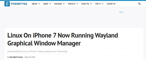 根据Fossbytes的报道,开发者对iPhone 7进行了逆向工程,在iPhone 7成功引导postmarketOS,让其成为首个搭载Linux系统的苹果手机。随后,他们继续进行解锁,终于成功在iPhone 7上实现了从命令行到图形用户界面的突破。