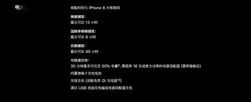 根据苹果官网的描述,iPhone SE的续航时间为视频播放最长13小时,流媒体播放最长8小时,音频播放最长40小时,还标注了一句“续航时间与iPhone 8大致相同”,现在看来确实如此。