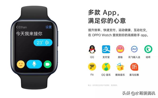 初期适配了常用的几款APP,音乐、运动、移动支付、社交一应俱全,这就真的是可以解放你的手机了,说实话有时候短途的出下门是真的不想带手机,去楼下买瓶饮料的时候就能轻松一些了,只带一块手表是可行的。