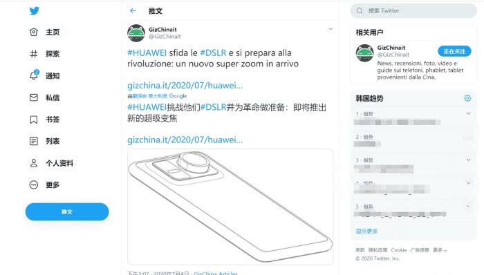 目前华为实现了全球首款10X的真光学变焦镜头,实现了20X的混合光变,完全是因为机身内部出现的一个潜望结构,在P40Pro+上的潜望光学折射达到了三个维度,所以之前单反的摄像头变焦,华为是把它折起来放进了机身内部,而下一部的发展怎样,貌似华为有了全新的方案,因为外媒给出了全新的华为摄像头外观设计。