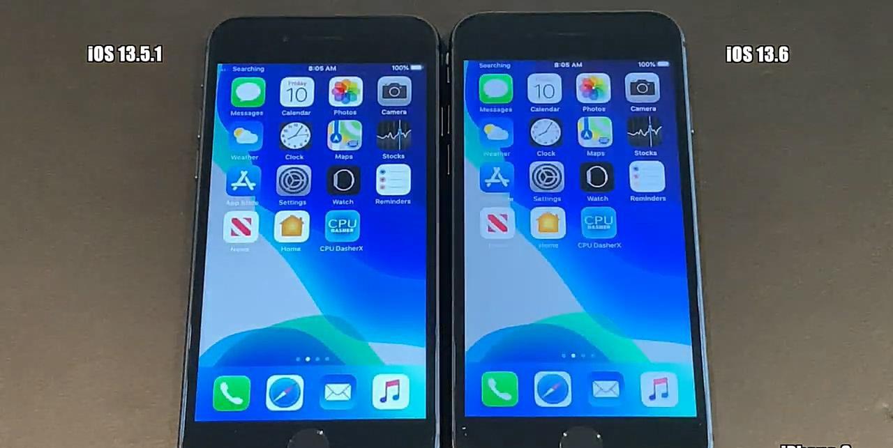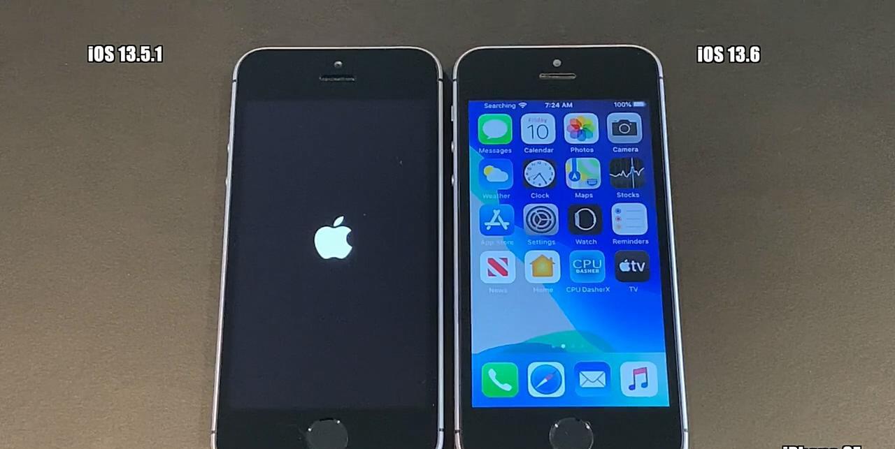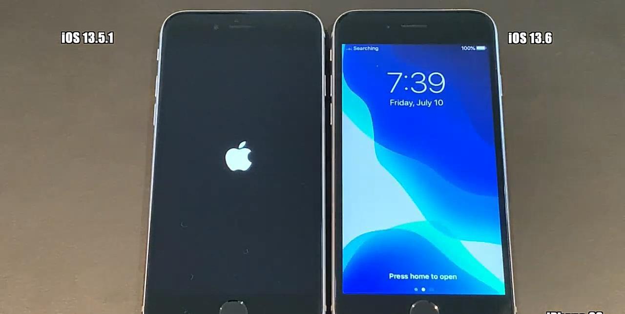 当这两台iPhoneSE同时启动后,可以看到iOS13.6速度相当快,开机仅仅耗时26秒。而iOS13.5.1则稍微落后1秒多,虽然差距不大,但可以明显感受到升级带来的速度提升。