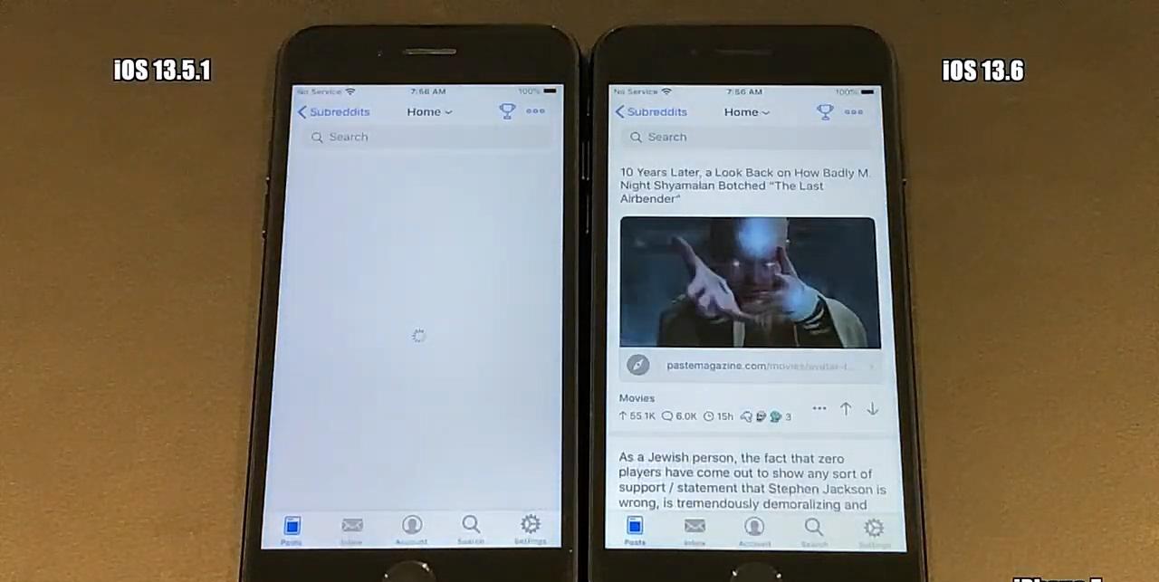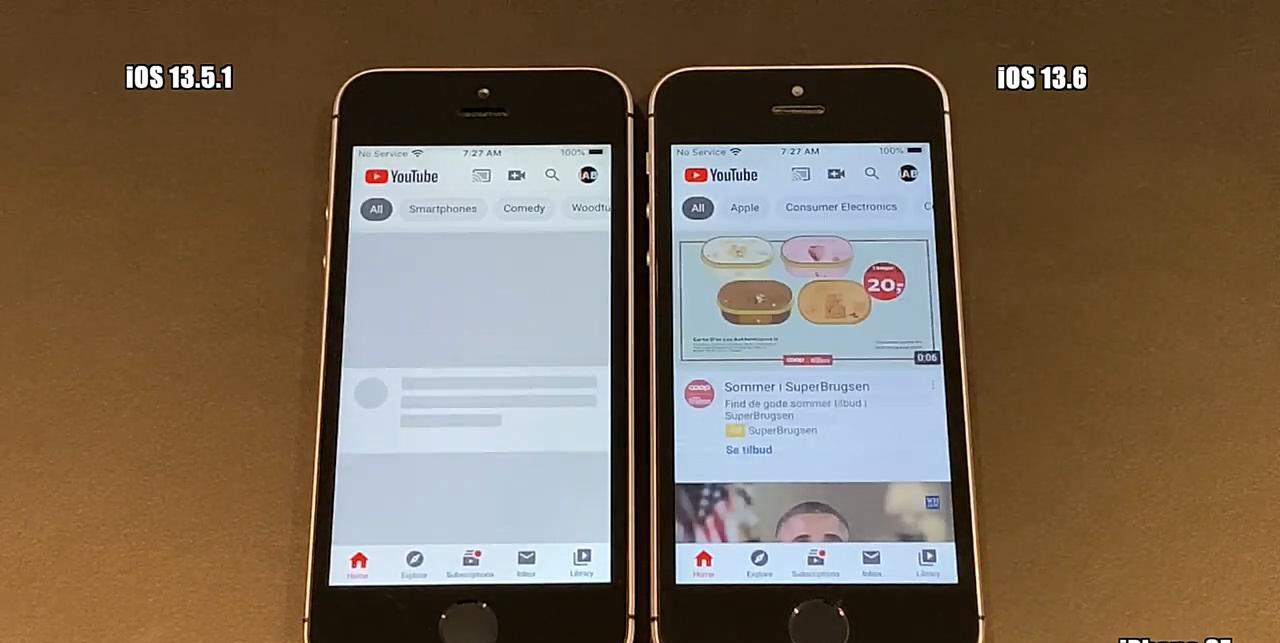 当运行系统软件的时候,iOS13.6与iOS13.5.1速度几乎都是差不多。不过运行第三方应用软件时,iOS13.6所运行的youtube、脸书、推特在图片加载速度上都要稍微快一点,甚至有时候iOS13.5.1还落后一大截。看来苹果对于iPhoneSE还是非常友好,无论是开机还是软件性能测试,优化力度都非常大。