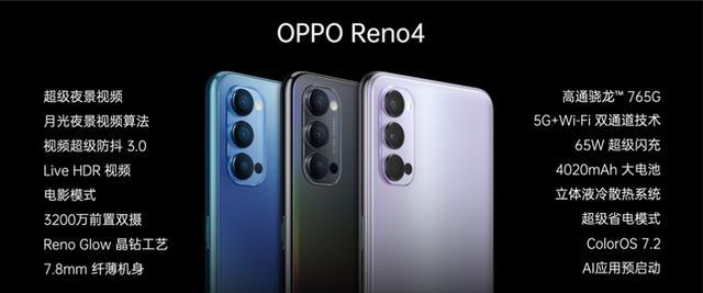 配置上OPPO Reno4系列都采用了骁龙765G处理器,充电方面采用了65W超级闪充。同样具备超级夜景视频、视频超级防抖 3.0 等视频拍摄功能。但在其他方面OPPO Reno4和OPPO Reno4Pro却略有不同。