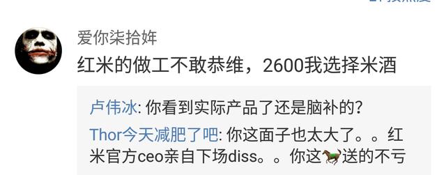 看到该网友的说法卢伟冰估计也是气炸了,你说你买了手机发现问题再来黑我也就认了,但我这手机还没发货,你也没拿到真机,评测就靠一张嘴,直接就把我的心血结晶说得一不值,那我还怎么惯着你?不怼你一下还真以为老实人好欺负了!