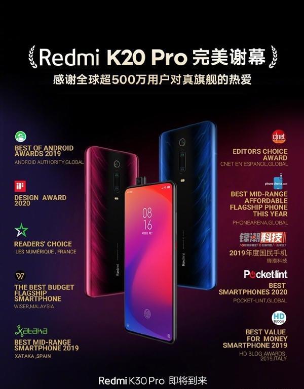 再说第二件喜事,就是RedmiK20Pro正式退市,卢伟冰发布微博表示,Redmi一代机皇K20Pro今日正式退市,感谢全球超500万热爱极致科技的用户。卢伟冰还称,RedmiK20Pro完美谢幕,一起期待全新RedmiK30Pro到来。值得一提的是,Redmi还非常用心,为K20系列用户准备了退市谢幕礼,是两个手机壳,虽然礼物不重,但也彰显了Redmi的真心和诚意。
