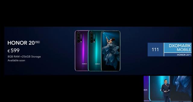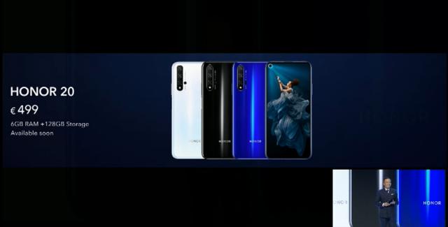 华为荣耀20pro:8+256g 599欧元起售,约合人民币4600元