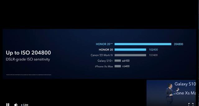 主摄采用索尼IMX586(比较常规),主摄+长焦镜头都搭载了OIS光学防抖,都比较常规的操作,不过主摄采用的f/1.4的光圈属于手机行业最大尺寸。同样采用超高ISO曝光值可以在极弱光的环境下拍摄物体。支持3X光学变焦,10X混合变焦,30X数码变焦。因为采用了一颗微距摄像头,所以华为荣耀20支持4CM微距拍摄。DXO评分111分,和一加7pro持平,符合之前笔者的预测。