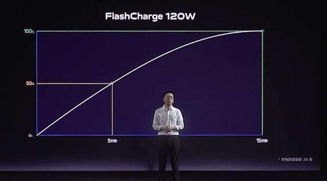 而在如此高功率以及高转化率的情况之下,120W的快充速度能够在5分钟就能够将4000毫安时电池充至一半,15分钟就能够充满。