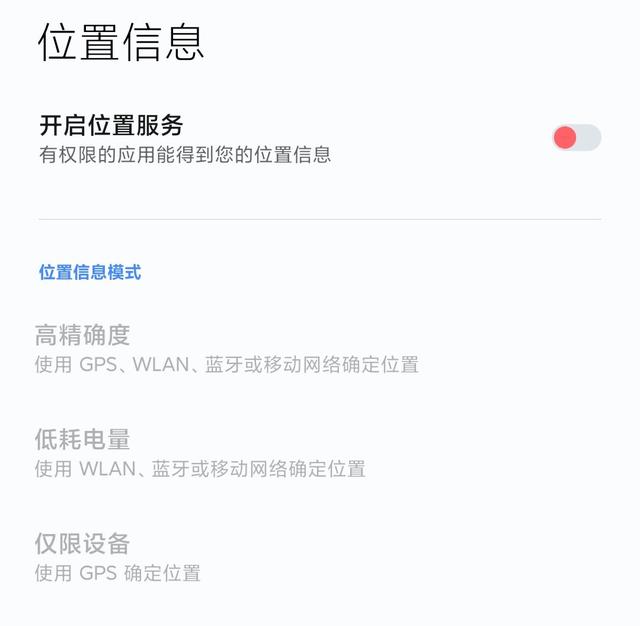 首先可能许多细心的小伙伴在手机定位之中都会发现三个不同的选项,那就是"高精确度","低耗电量"以及"仅限设备",可能不同的手机系统有不同的表述方式,但是大致意思都是一样的。