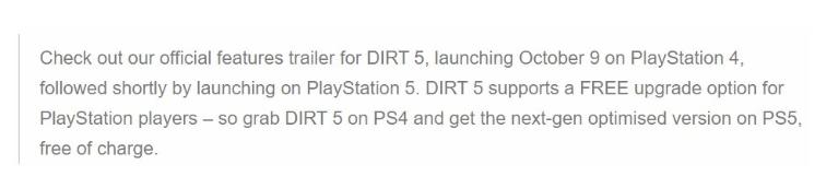 而在前不久,索尼家的游戏平台也是迎来了全新的PS 5系列升级,而最近游戏《尘埃 5》开发商 Codemasters就表示,全新的《尘埃 5》大作将支持玩家免费从原先的PS 4版本升级支持到最新的PS 5版本,可以说也是比较良心了。