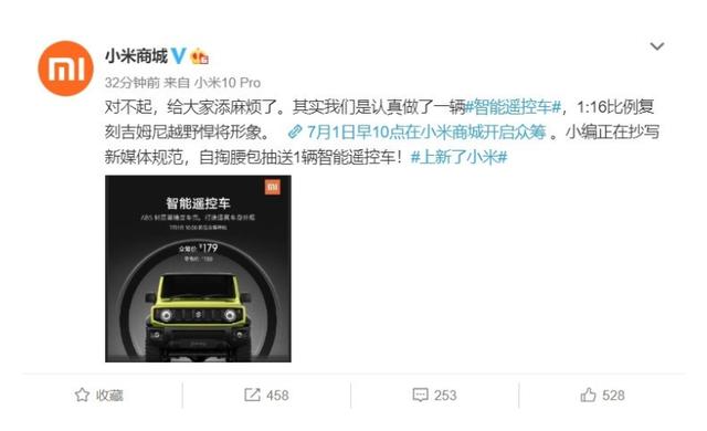 但其实事件之后的真相是小米声称即将上线众筹一款智能遥控汽车,而此后官方也是承认了宣传上的抖机灵失误。