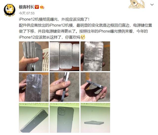 首先是最近有一位知名博主@极客村长就曝光了称是供应商缩放出来的iPhone 12的机模,其中就透露了最新一代的iPhone 12的更多细节以及外观配置。