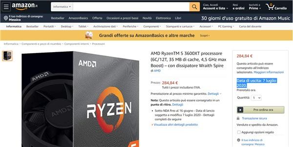 而在最近就有消息称,在意大利的亚马逊商城之上就发现了两款全新的AMD锐龙系列CPU,分别是Ryzen 9 3900XT 和 Ryzen 5 3600XT。