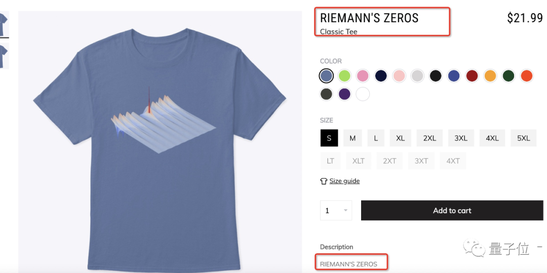 然后,这位哥们在该 T 恤的商品名称栏和描述栏中简单地写下了“Riemann's zeta function”这几个单词。