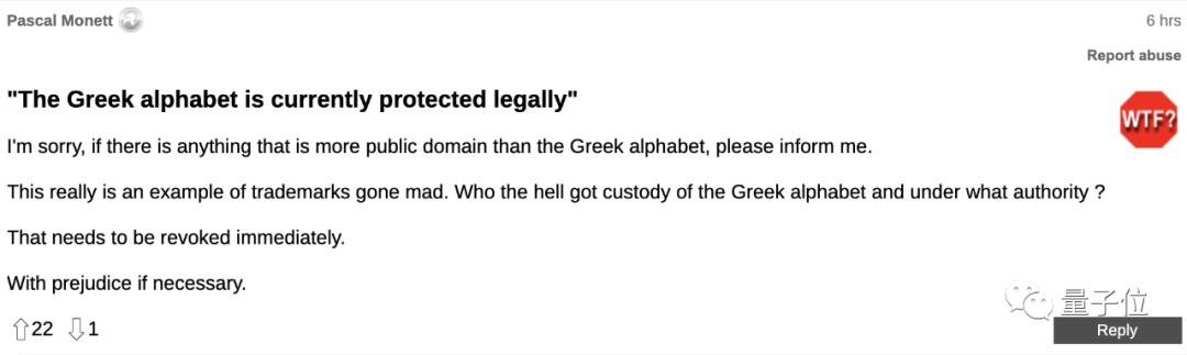商标权都疯了吧?谁给你的权利获得希腊字母的所有权?凭什么?”