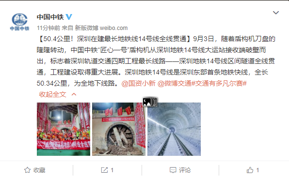6 日消息 据中国中铁,深圳轨道交通四期工程最长线路 —— 深圳地铁 14 号线区间隧道于 9 月 3 日全线贯通,工程建设取得重大进展,为后续“轨通”“电通”打下坚实的基础,预计深圳地铁 14 号线可于 2022 年建成通车。