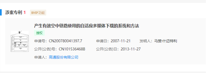 ,企查查信息显示,此前,苹果公司曾就高通公司拥有的专利“产生有效空中链路使用的自适应多媒体下载的系统和方法” 提出无效请求,中国国家知识产权局判定该项专利无效。