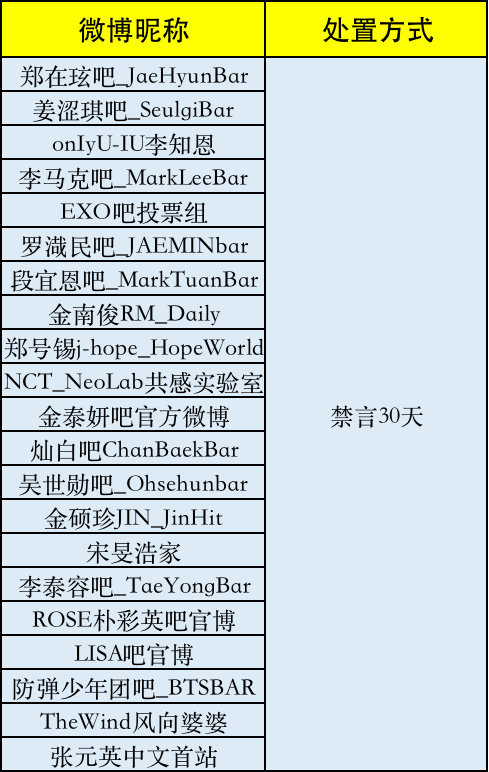 6 日消息 新浪微博管理员发布公告,经网友举报,有部分粉丝账号在微博传播非理性追星应援内容,导向严重错误。对此站方及时对 @张元英中文首站 等 21 个账号予以禁言 30 天的处置,并对相关违规博文进行了清理。微博坚决反对此类非理性追星行为,并予以严肃处理。