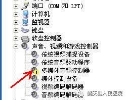 声卡驱动安装不正常应该是这样的,声卡设备上有黄色感叹号!