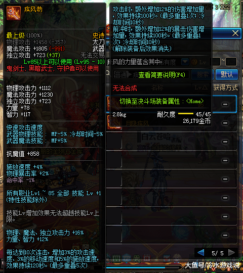 最后给大家推荐一把哈林太刀,有三速,伤害不俗,成本低,如果剑魂深渊刷出来了不要分解,跳叉剑魂的小神器哦。