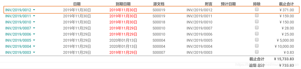 系统显示所有销售订单,发票所涉及的回款。一个销售订单分为多个发票,或者一个发票分为多次付款的,这里也划分为多个回款计划。如果回款计划已经到期,则标红显示。