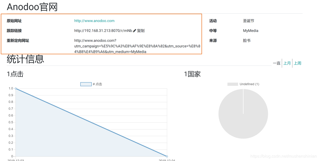 如果通过第三方平台,邮件,短信等众多客户交互渠道发布的内容网址,还需要对客户是否访问进行跟踪。以下截图是通过短连接发布的地址的统计数据,包括点击数按时间的统计,按地区的统计等。