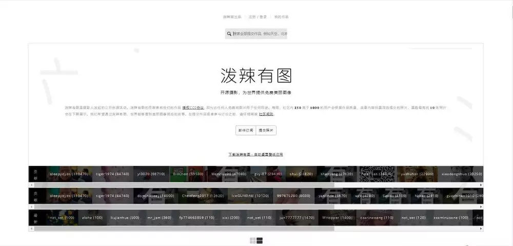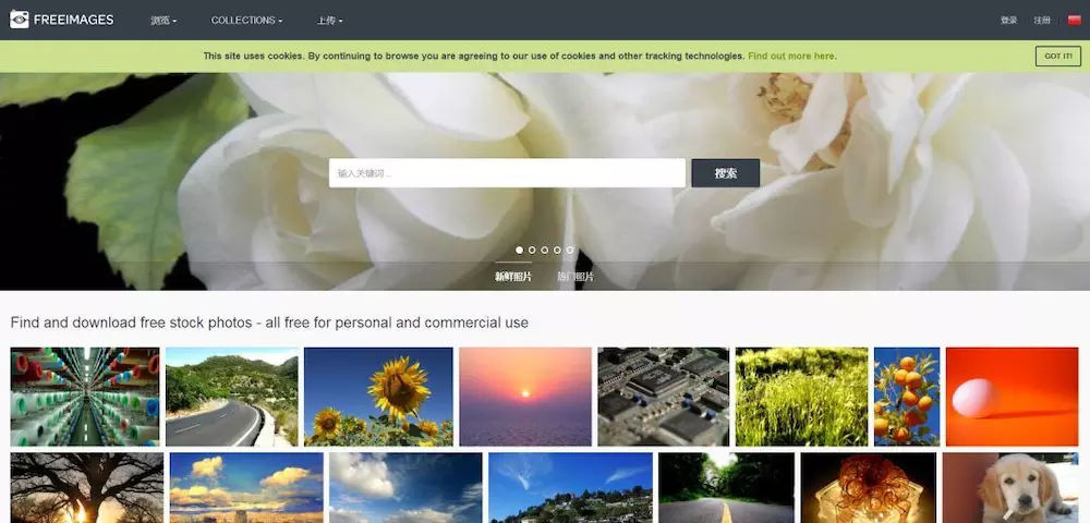 网站支持中文,图片数量庞大。
